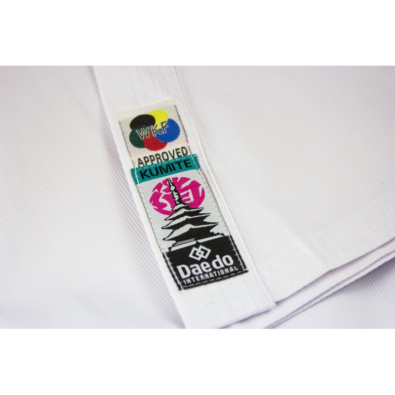 Уніформа для занять куміте, представлена Daedo – чудовий варіант як для тренувань, так і для змагань. Зручна та практична, вона сподобається як новачкам, так і професіоналам, оскільки отримала акредитацію Світової федерації Карате.