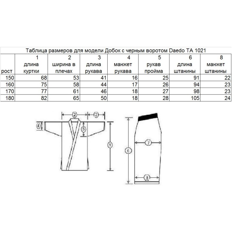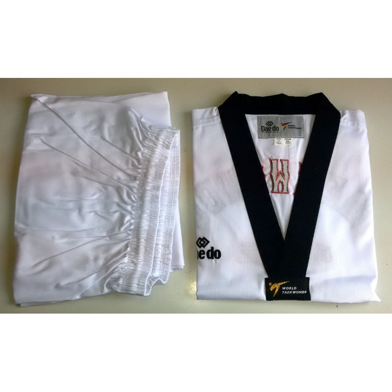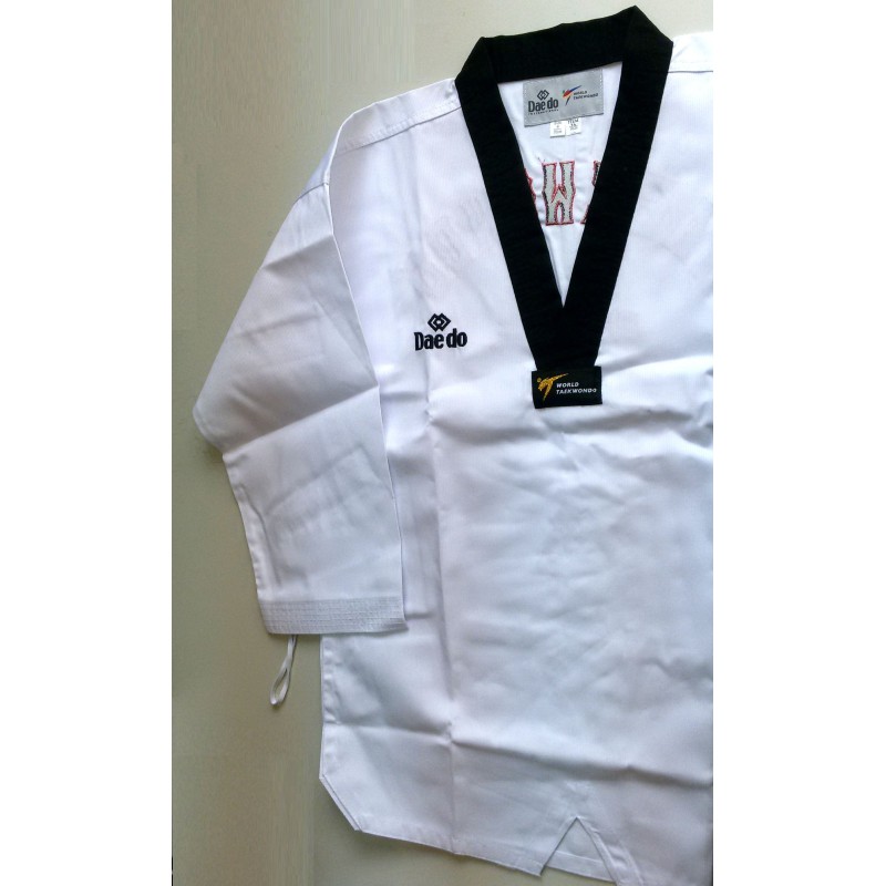 Добок Daedo был разработан для занятий тхэквондо. Он станет оптимальным вариантом как для спортсменов, так и для тренеров, поскольку не только имеет отличные эстетические характеристики, но и очень удобен. Для пошива использован материал белого цвета на основе натурального хлопка с добавлением волокон полиэстера. На спине вышивка. Добок аккредитованный WT.