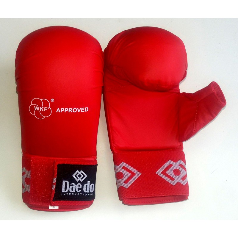 Перчатки для карате Daedo WKF представлены в красном и синем цветах.