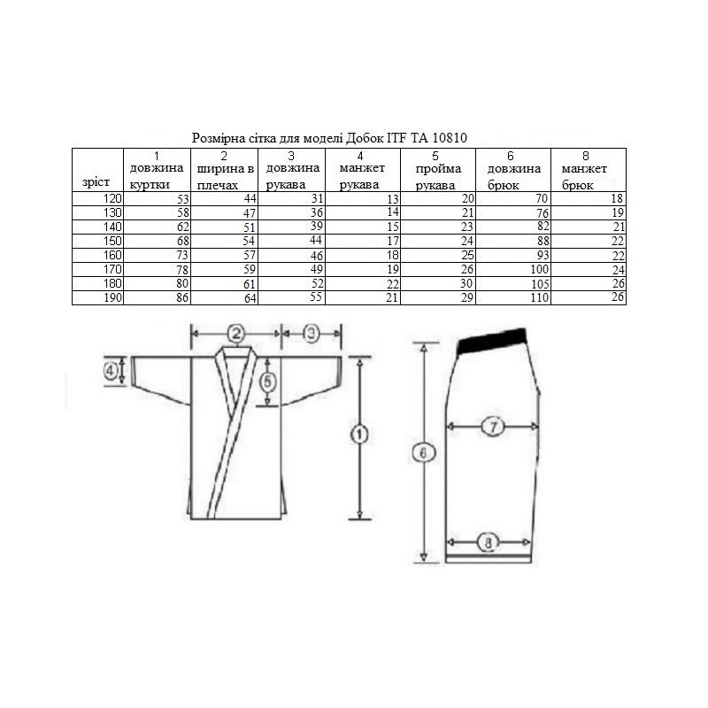 Куртка с застежкой на липучке и вышивкой на спине. Комплект состоит из куртки и брюк, без пояса.