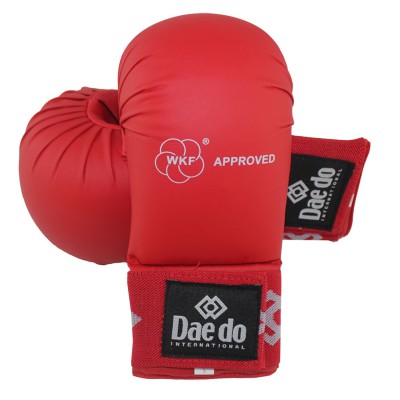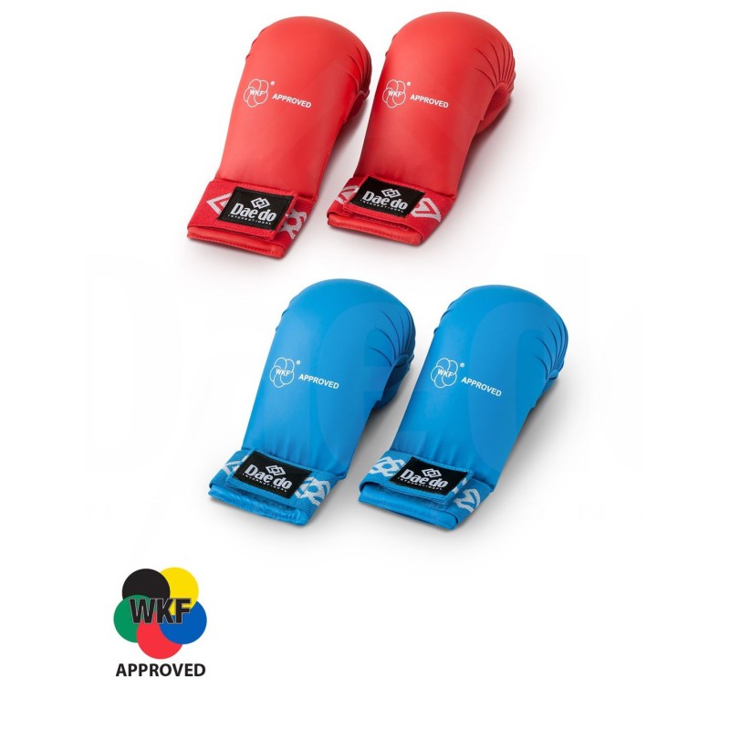 Перчатки для карате Daedo WKF представлены в красном и синем цветах.
